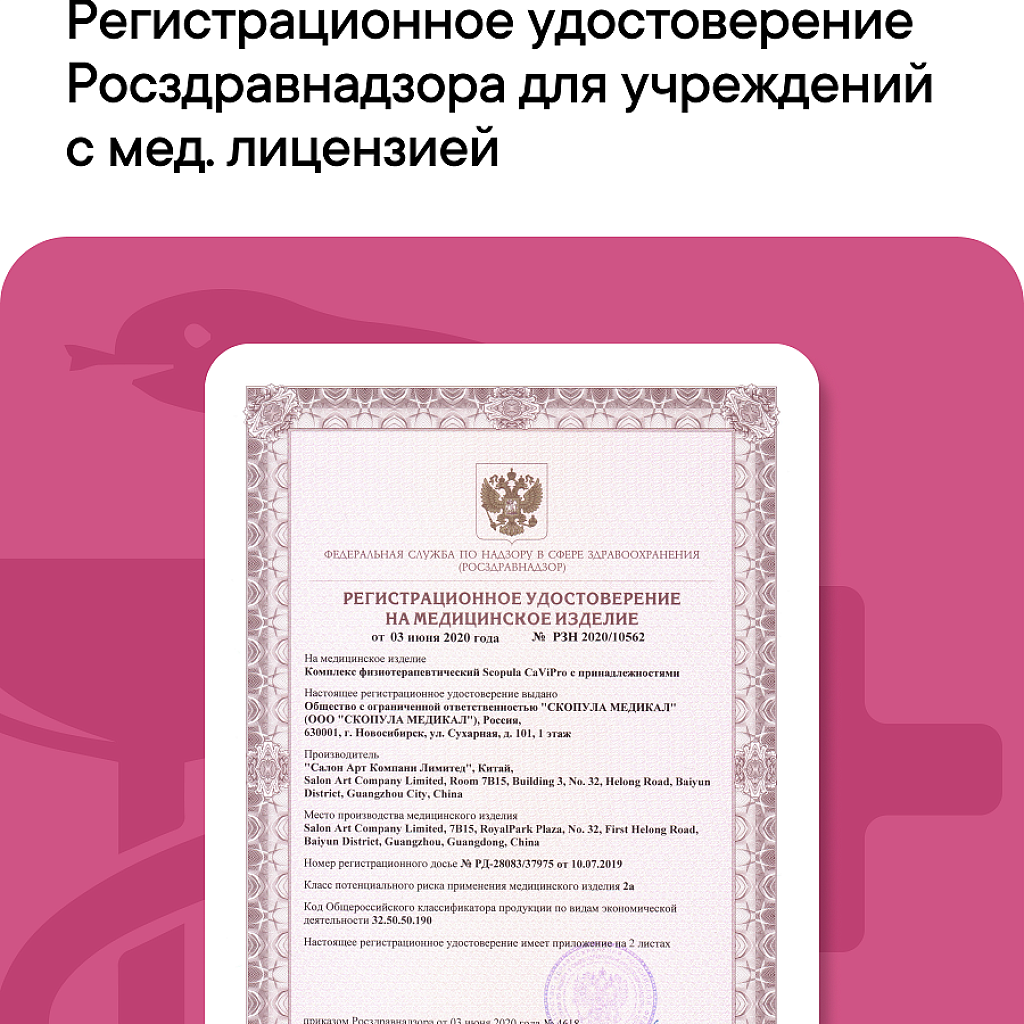 Имеет регистрационное удостоверение Росздравнадзора